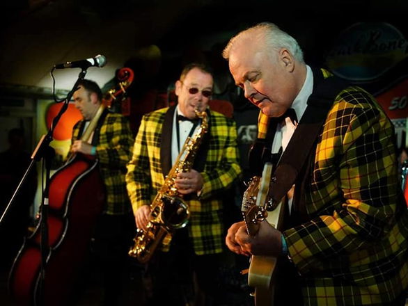 As you would expect the band will wear matching coloured tartan tuxedos white dress shirts dickey bow tie smart black trousers & black patent shoes to give a truly authentic Bill Haley experience.