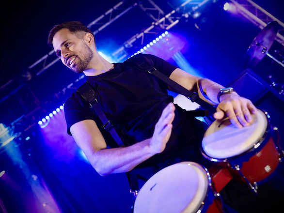 DJ Rhythmix offers a one-of-a-kind, high-energy DJ and percussion experience that will keep your guests on their feet all night long. Combining classic floor-fillers with modern party anthems, he delivers an electrifying performance that seamlessly blends top-notch DJing with live percussion.