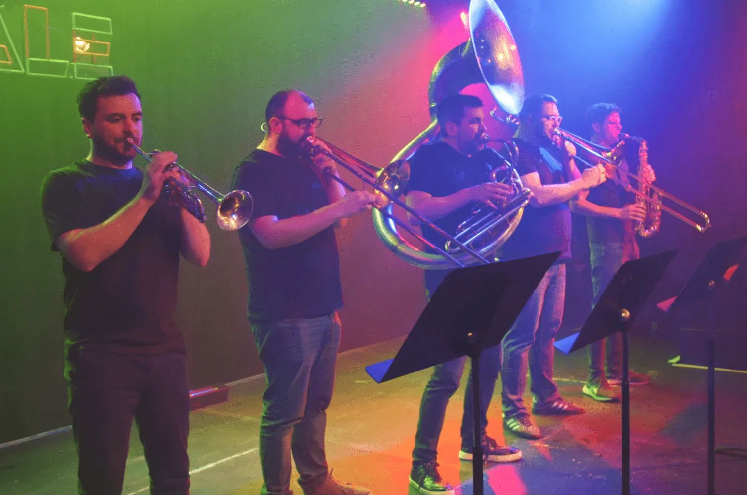 5 piece band 1 x trumpet2 x trombone1 x sax1 x tubaplus sound engineer