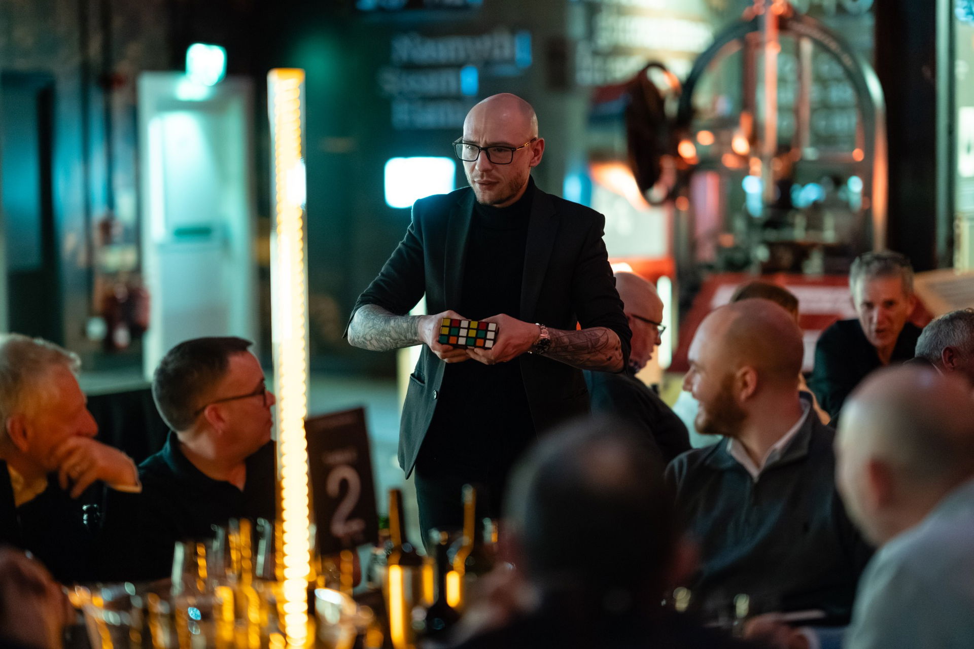 Utilising effects such as smoke, fire or even commonplace objects such as rings, watches or money. Channelling elements from the best entertainers in the business, the raw edge of Dynamo or David Blaine mixed effortlessly with the sophistication of Derren Brown organically weaving mix and mingle performance with mind blowing sleight of hand.