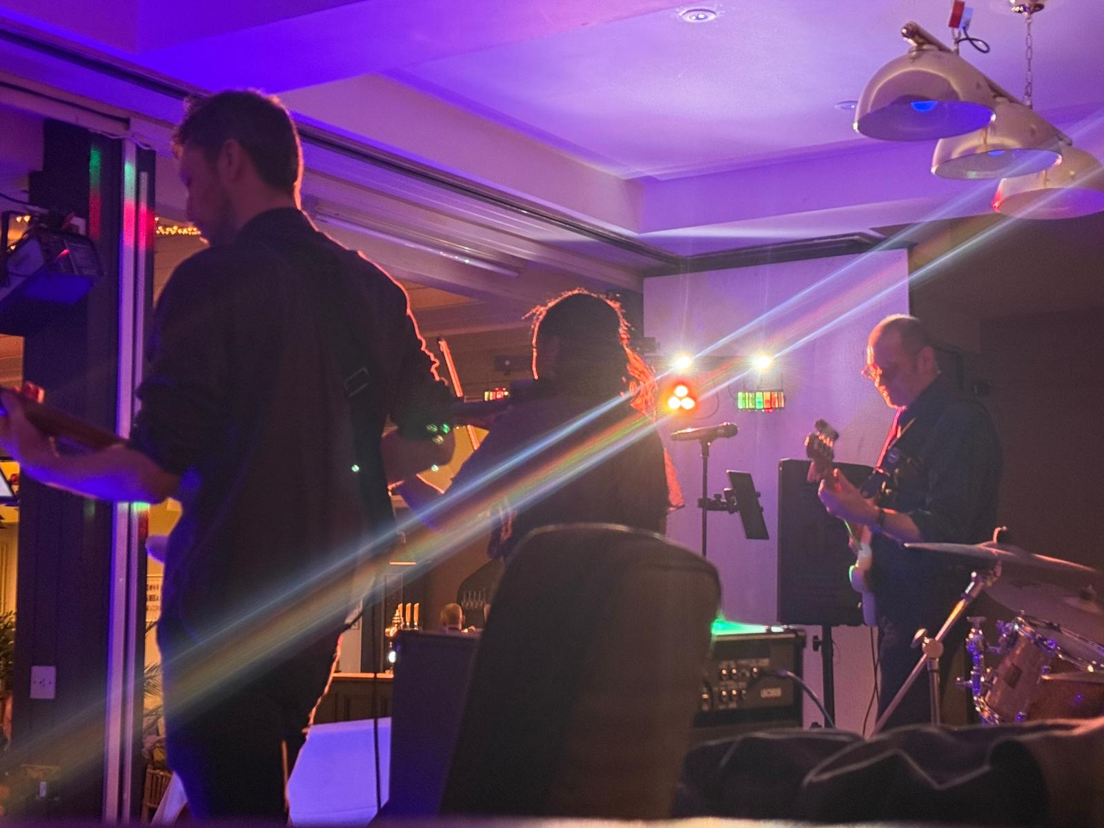 Guitar, bass, and drums – our drummer is also a professional bagpiper, available as an exciting extra.